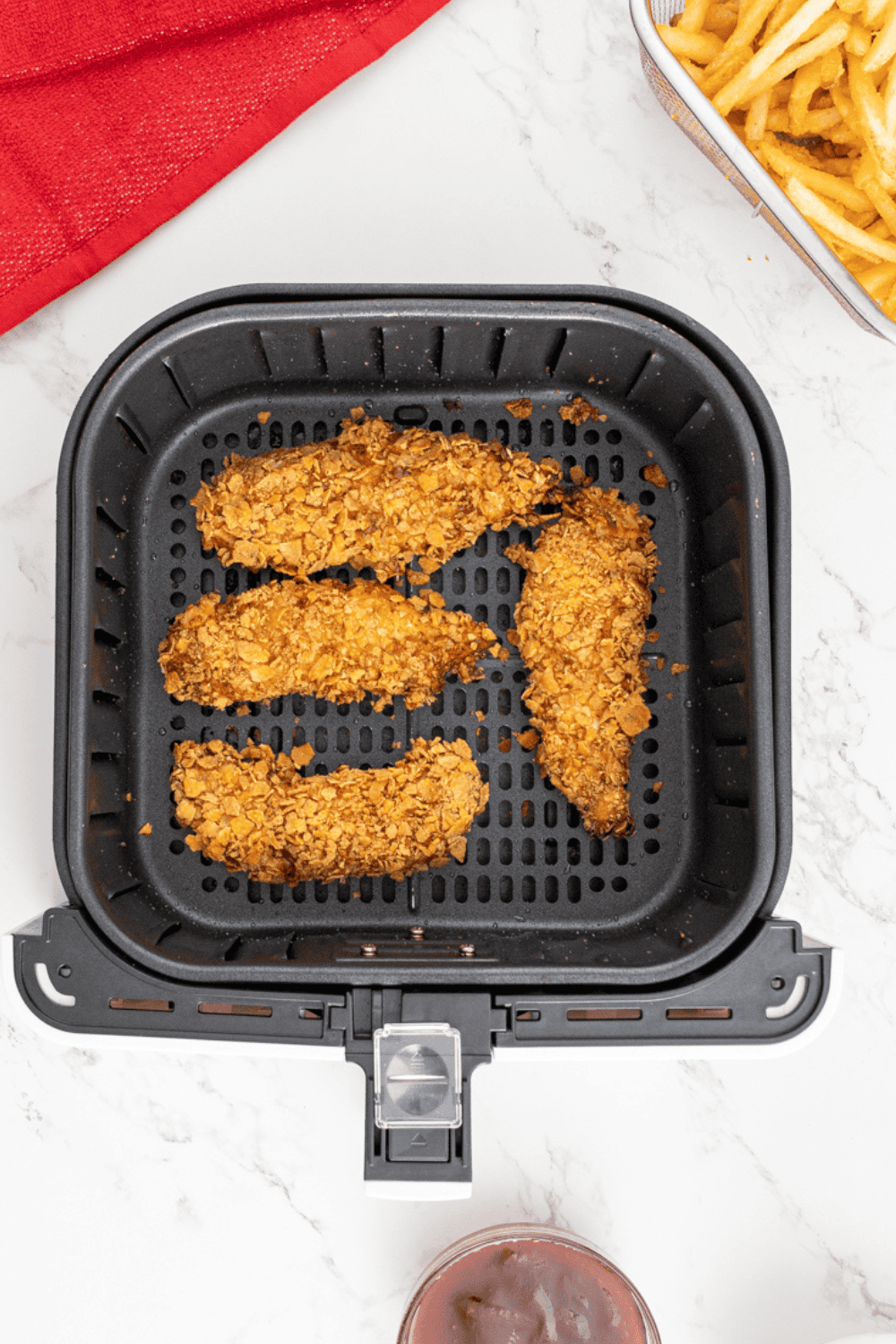 How do I prevent the breading from sticking to the air fryer basket? Always spray the basket with cooking spray before adding the tenders, and spray the tops of the tenders too. If your air fryer basket tends to stick, you can also place a piece of perforated parchment paper in the bottom of the basket.