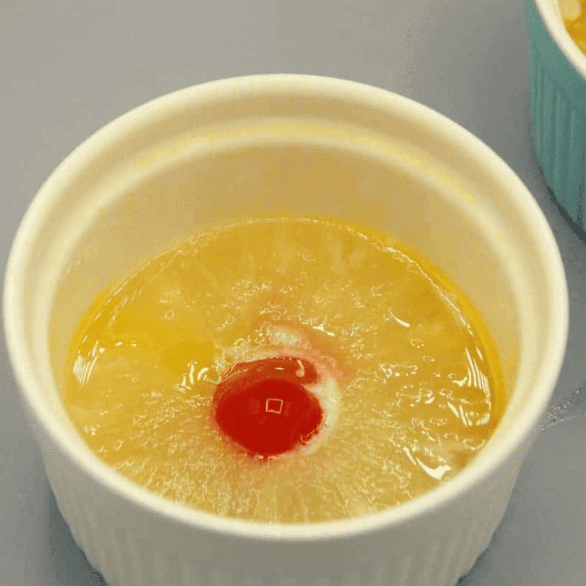 - Spray your ramekins with non-stick cooking spray. And then pour 1 tablespoon of melted butter into the greased ramekin, and then add the 2 tablespoons brown sugar on top of the 2 tablespoons unsalted melted butter, add the 2 large pineapple slices and top with a 2 Maraschino Cherries in the middle.
