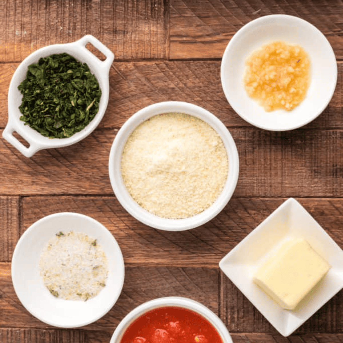 - Seasonings and Spices: Minced Garlic, Dried Parsley, Garlic Salt, and Grated Parmesan Cheese.