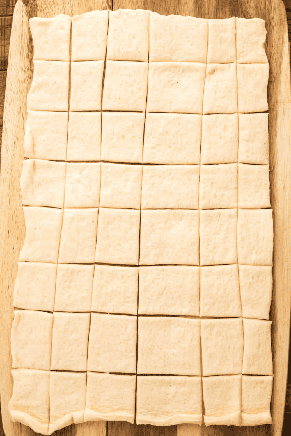 Step Two: Use a pizza cutter to cut dough into 1” pieces.