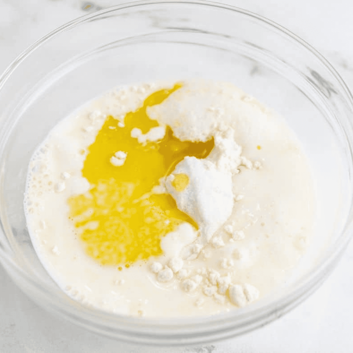 - In a small bowl, mix the 4 tablespoons all-purpose flour 1/4 teaspoon baking powder, 1/8 teaspoon baking soda, 1/4 teaspoon salt 3 tablespoons milk and1 tablespoon olive oil.