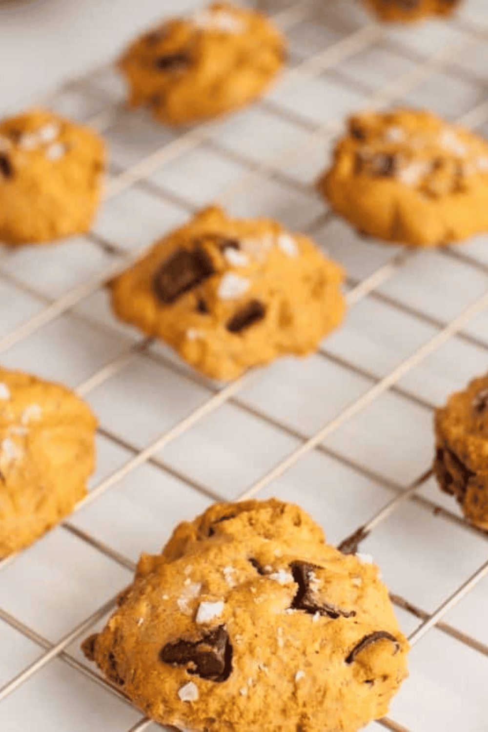 Soft pumpkin cookies filled with warm spices and packed with rich chocolate chunks come together quickly in the air fryer.