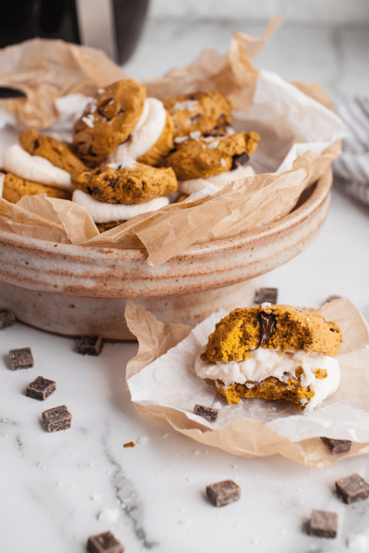 Air Fryer Pumpkin Chocolate Chunk Sandwich Cookie