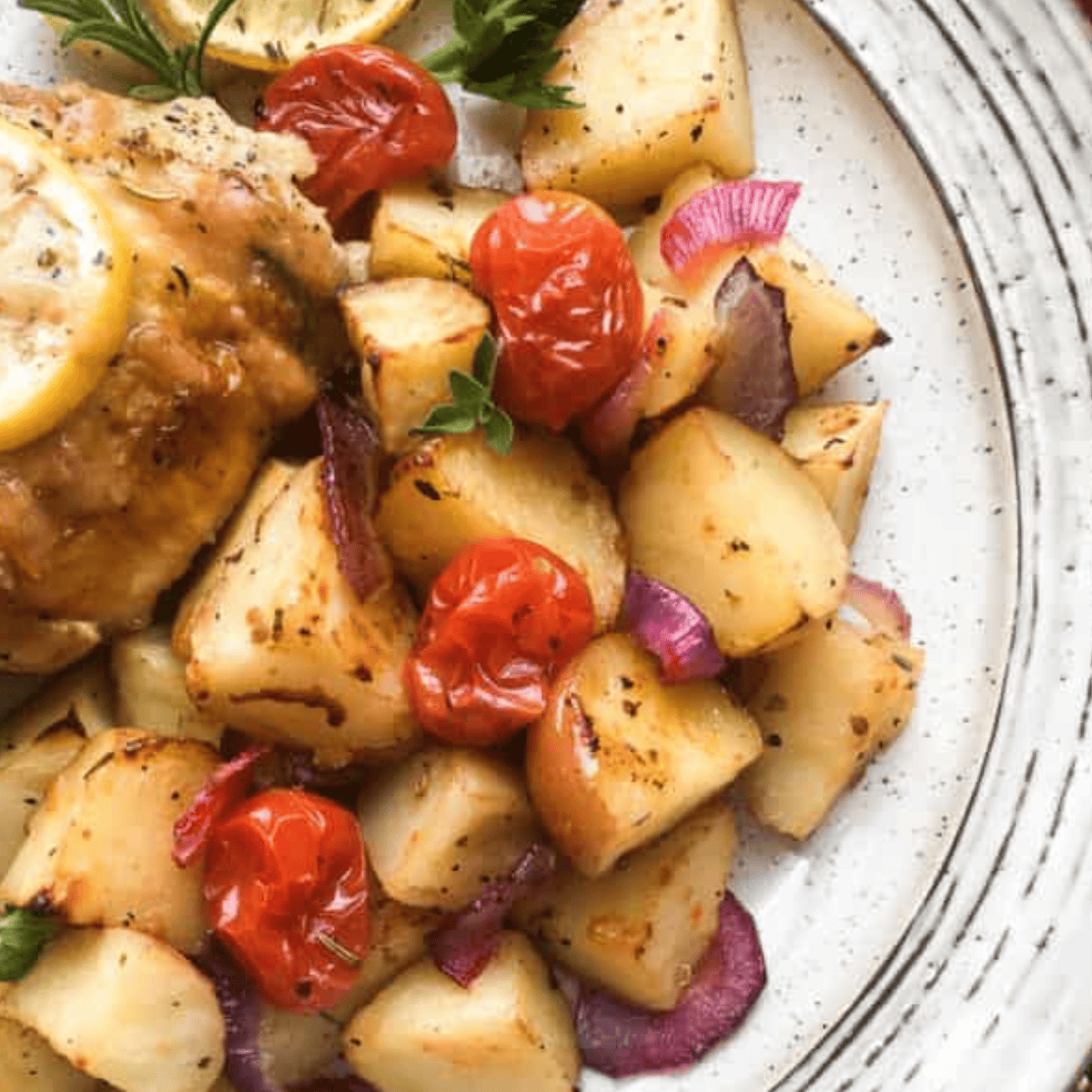 - Juicy tomatoes: Cherry tomatoes burst with flavor and complement the potatoes.