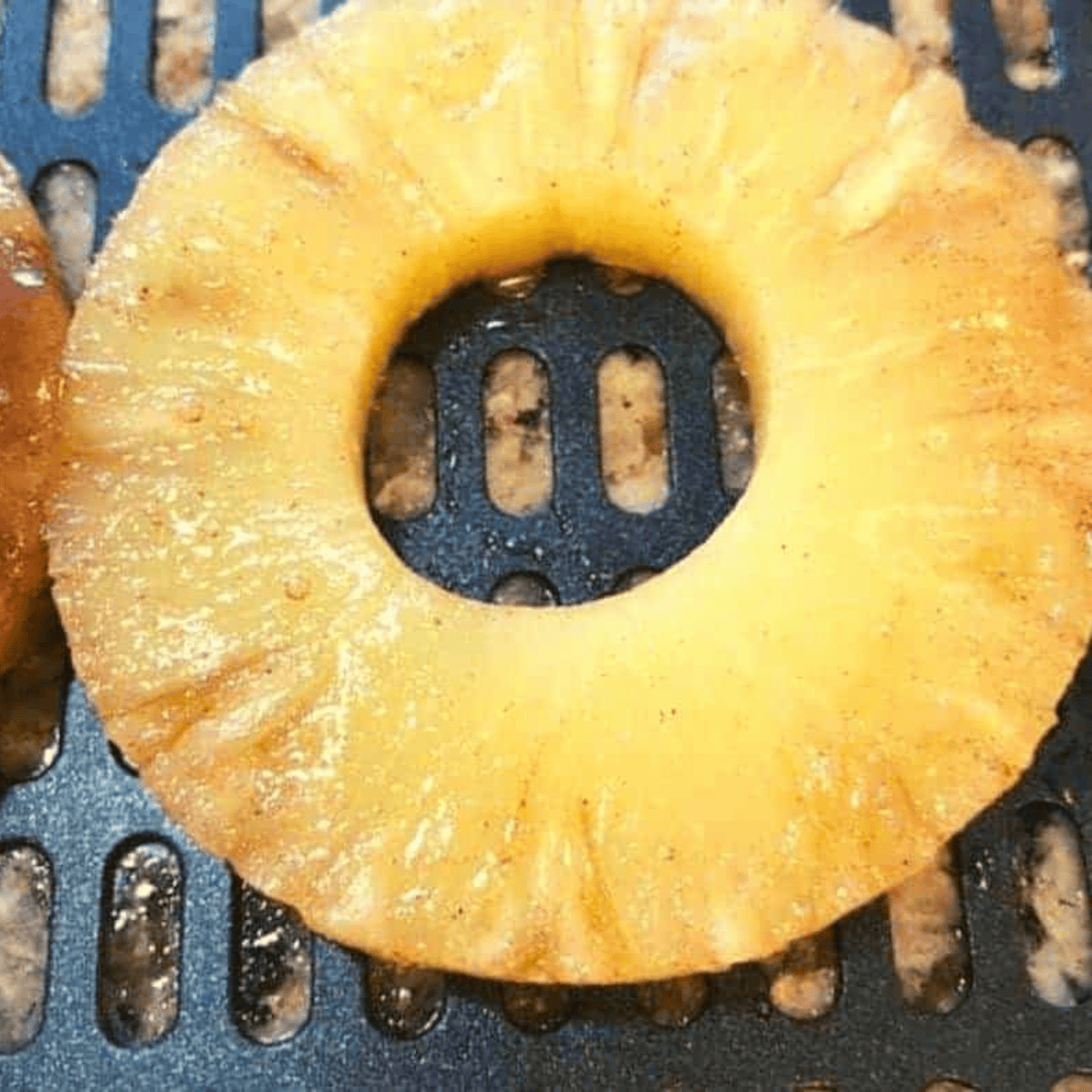 - Place the pineapple rings onto the air fryer tray or in the air fryer basket. Set them in at 350 degrees F for 5 minutes. (air fryer setting)