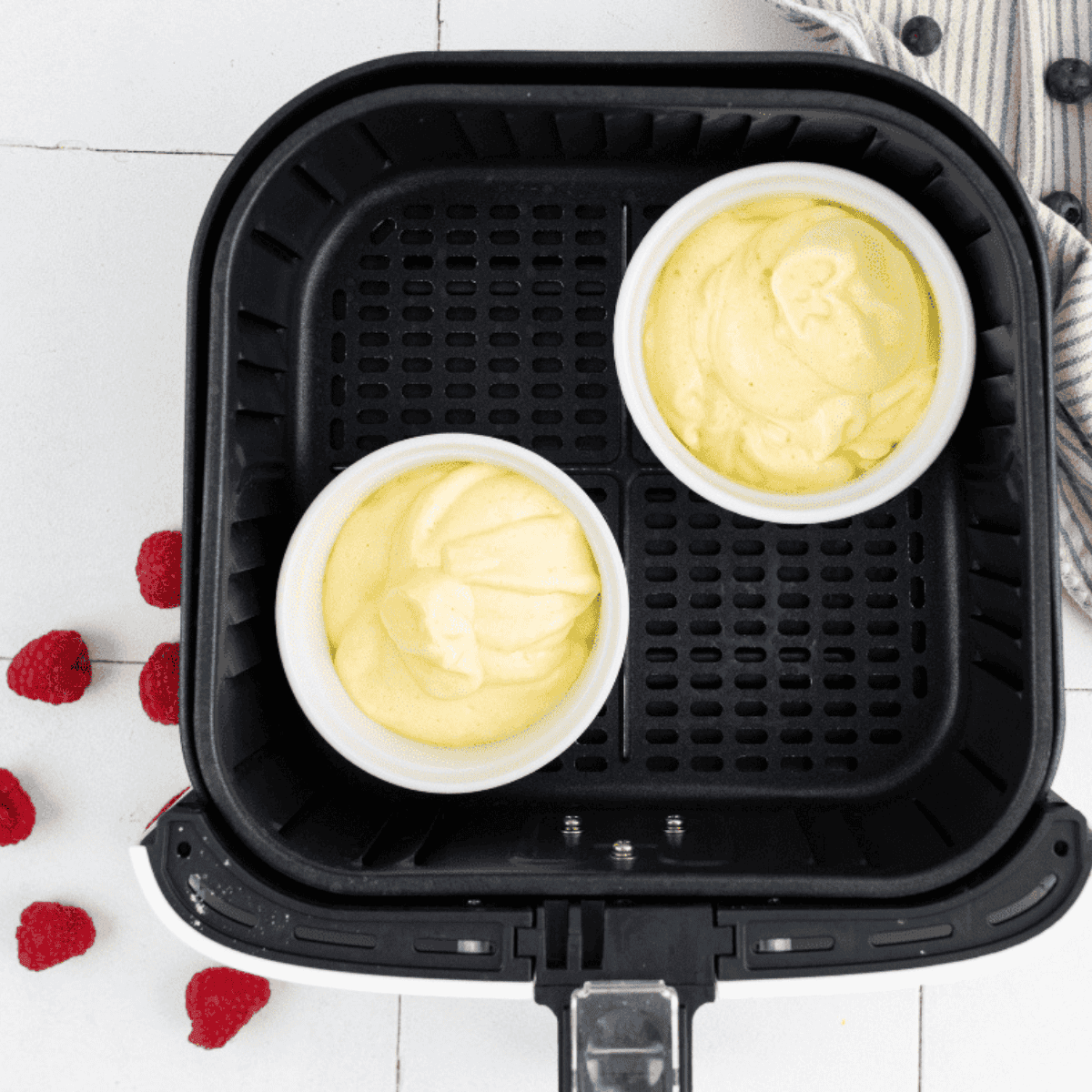 - Place the ramekins into the preheated air fryer basket. Set cook time for 8-10 minutes.