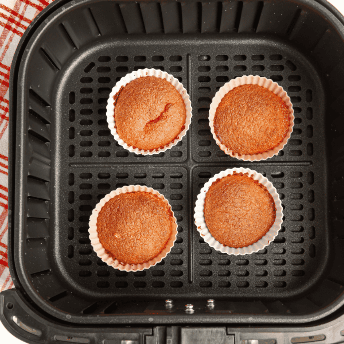 - Set air fryer temperature to 320 degrees F on the air fry setting, set cook time for 9-12 minutes or until the cupcakes are cooked through.