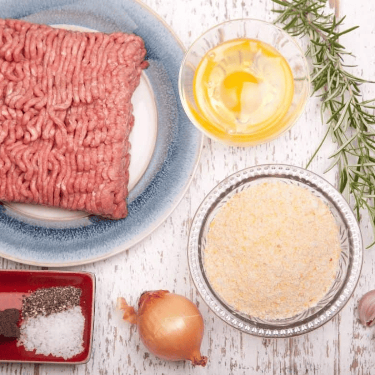 - Combine the ground beef, onions, bread crumbs (or panko), seasonings, and egg in a large mixing bowl. Mix well until the mixture is well combined.