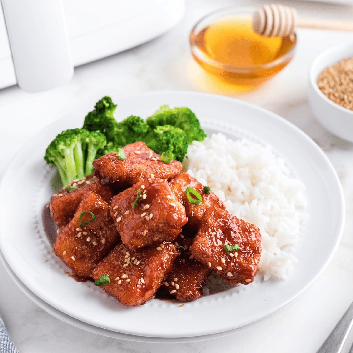 • Garnish with 2 green onions and 1 teaspoon toasted sesame seeds if desired. Serve over rice, noodles, or as an appetizer.
