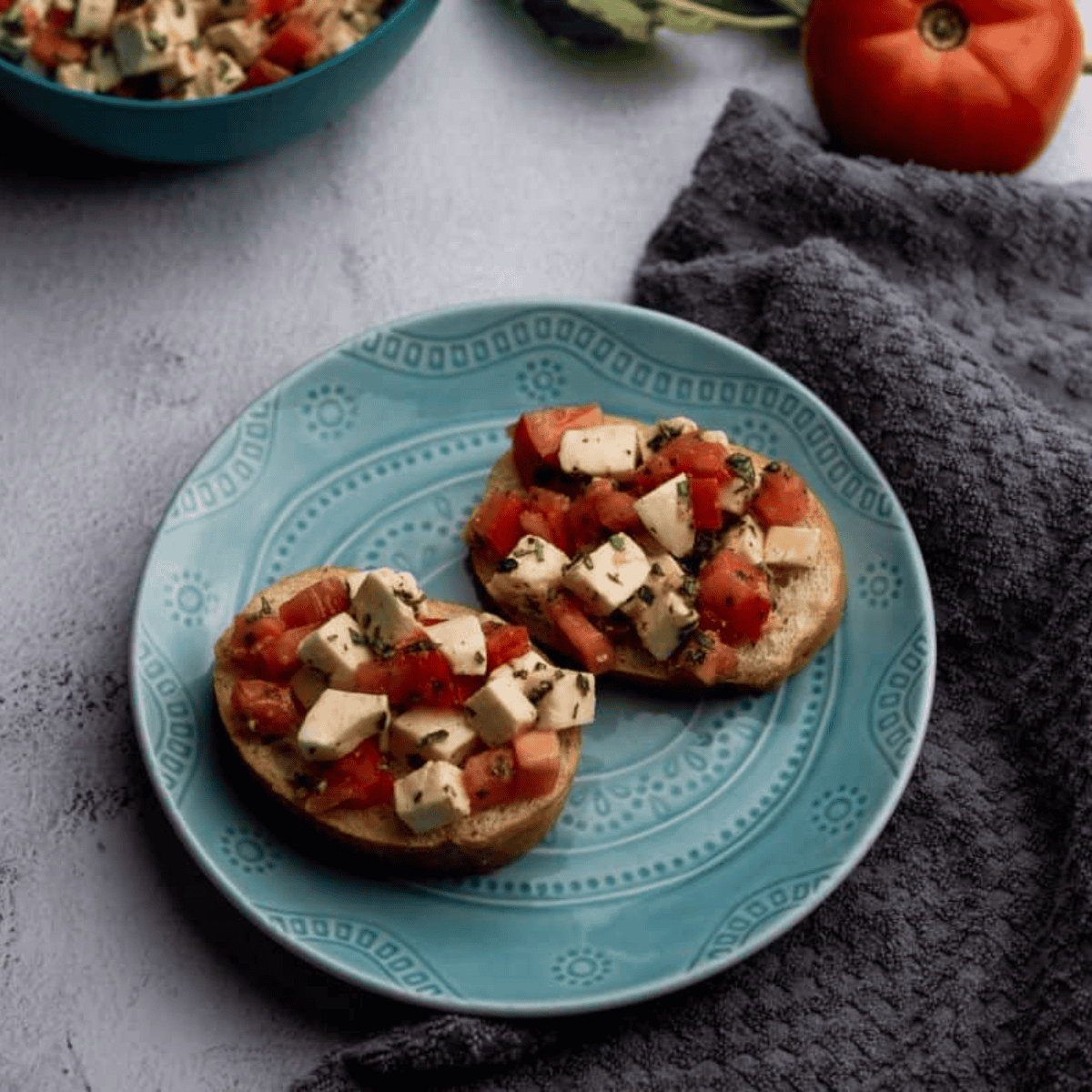 Air Fryer Tomato and Buffalo Mozzarella Bruschetta