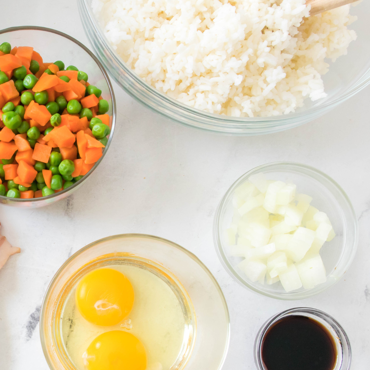 - Soy sauce: Low-sodium soy sauce to season rice evenly.