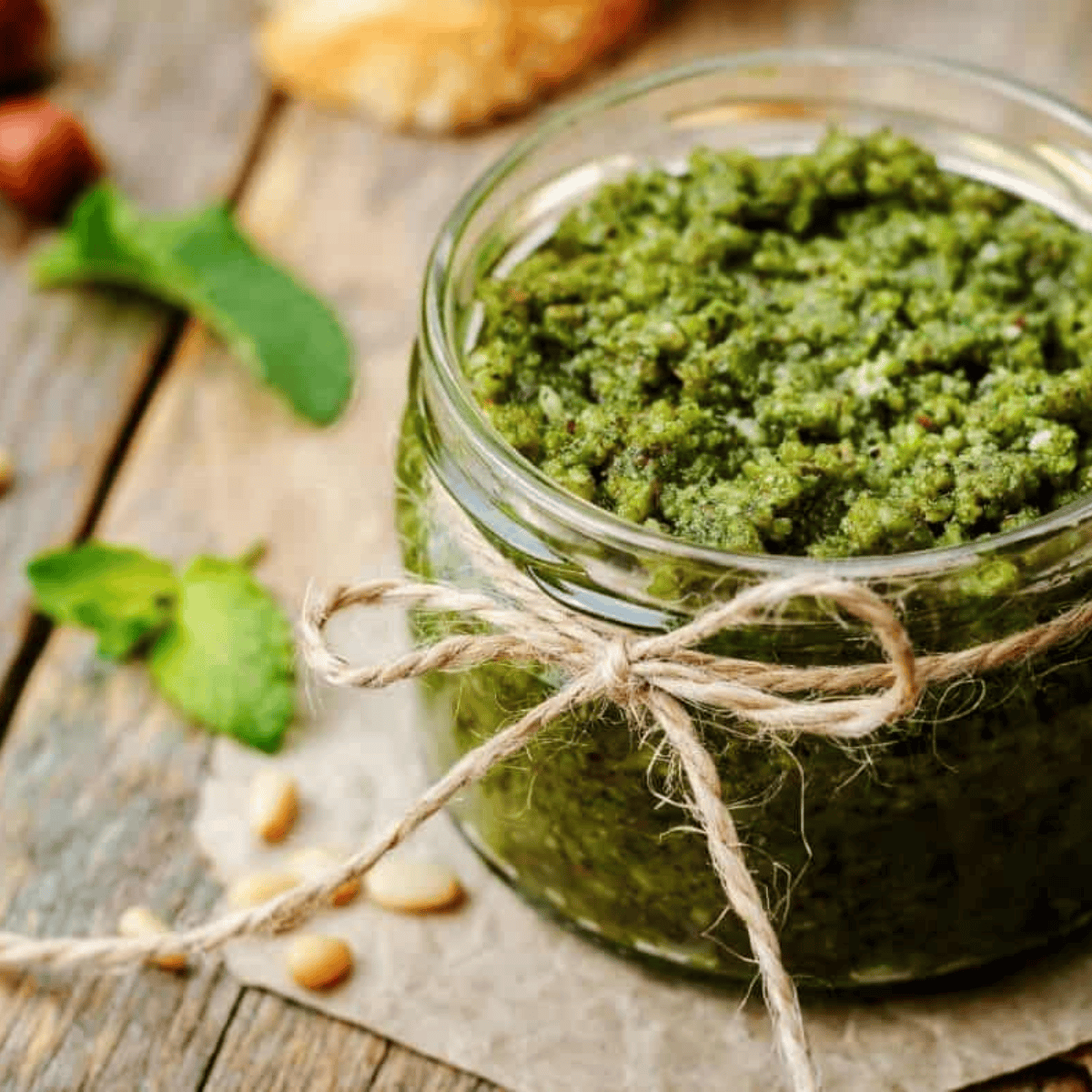 • You can either use store-bought or homemade pesto sauce for this recipe.