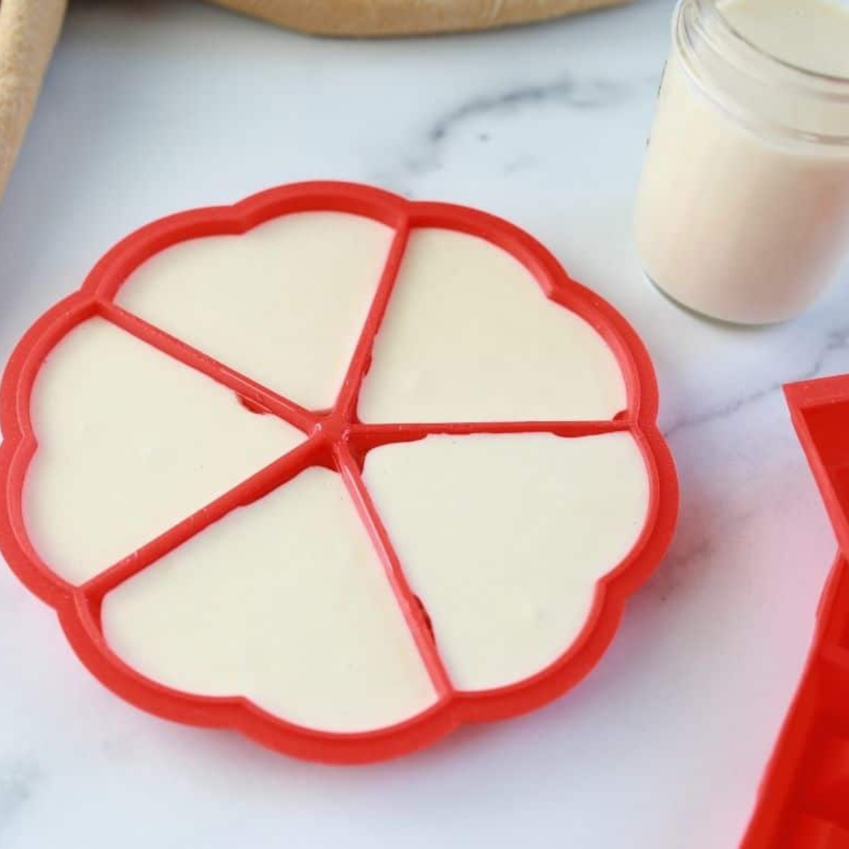 - Fill your mold (I found it easier after my 1st batch) to put the mold directly on the baking sheet, so it wouldn’t spill while moving it.