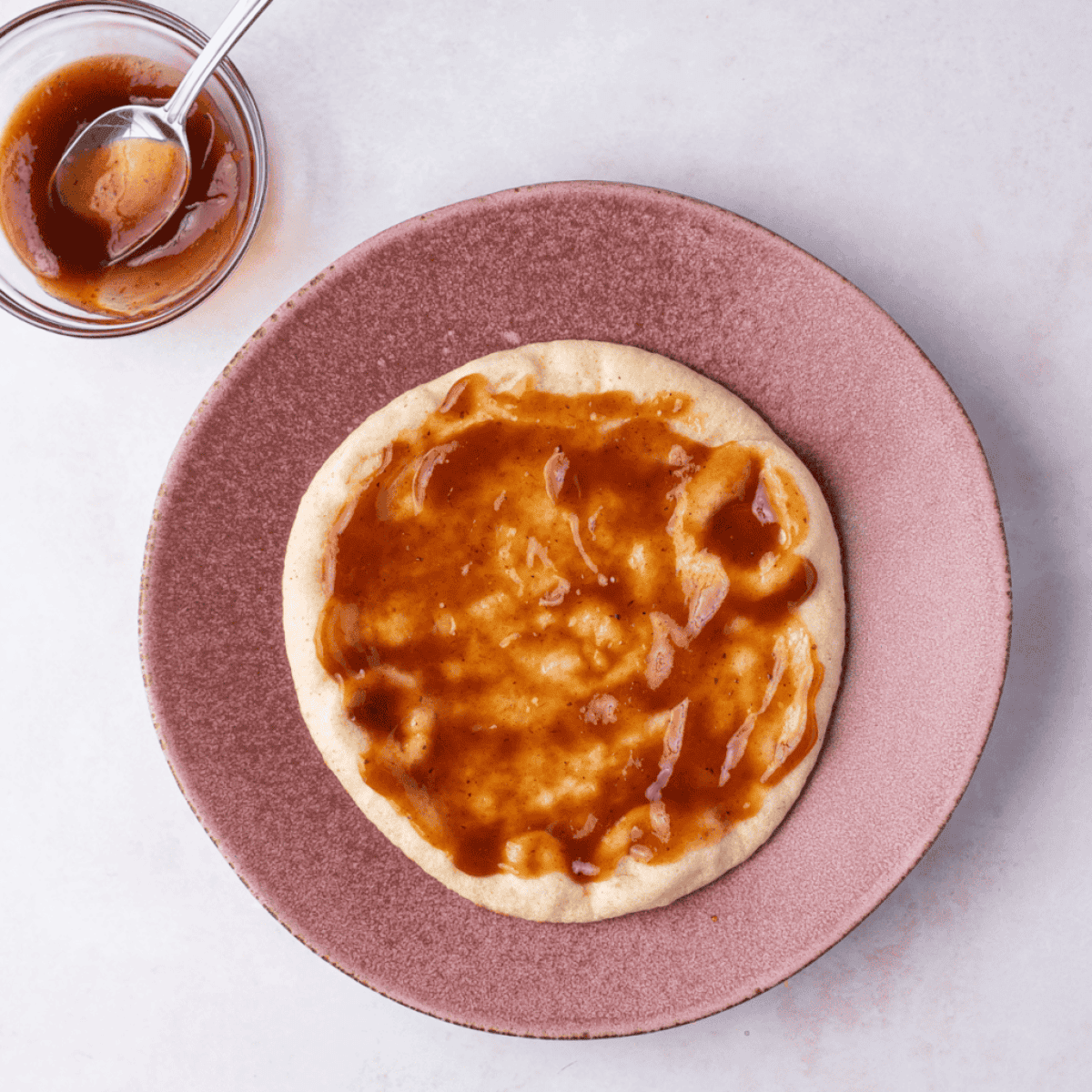 Step Three: In a small bowl, mix the tomato sauce, dried oregano, garlic powder, and a pinch of salt and black pepper.