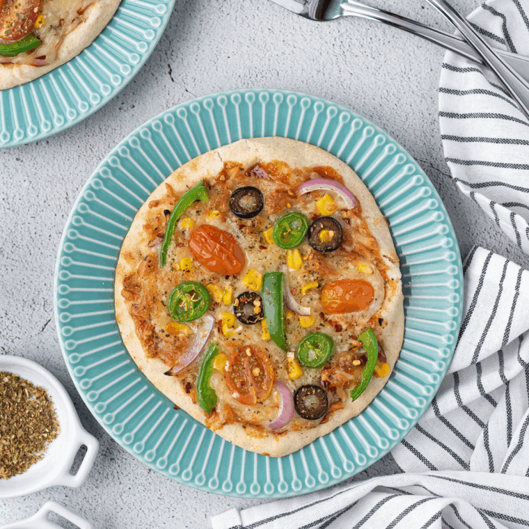 How do I prevent the pita from getting soggy? Don’t overload toppings and preheat the air fryer. Cooking at a slightly higher temperature for a short time keeps the crust crisp.