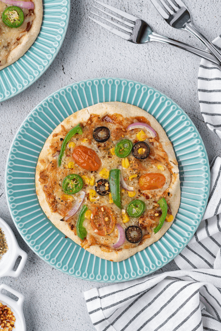 Can I freeze these pita pizzas? Absolutely. Wrap each pizza in foil and freeze. Reheat in the air fryer at 350°F for 5–6 minutes.