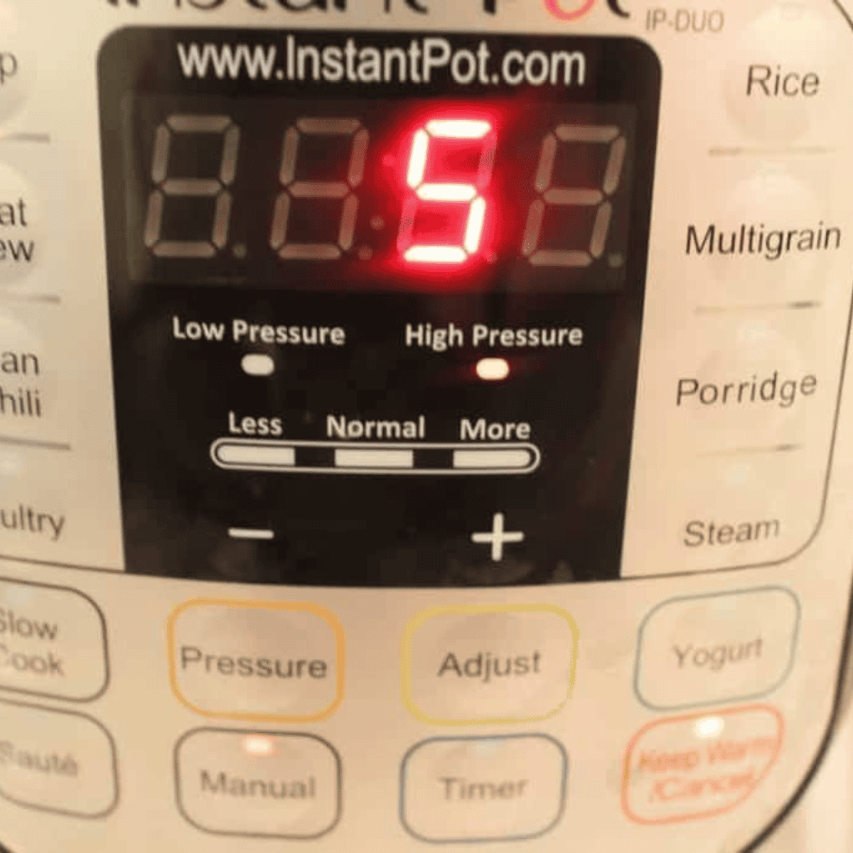 Step Two: Add the lid, securing it as the instructions, and set cook time for 5 minutes at manual high pressure. When the time is done, do a quick release.