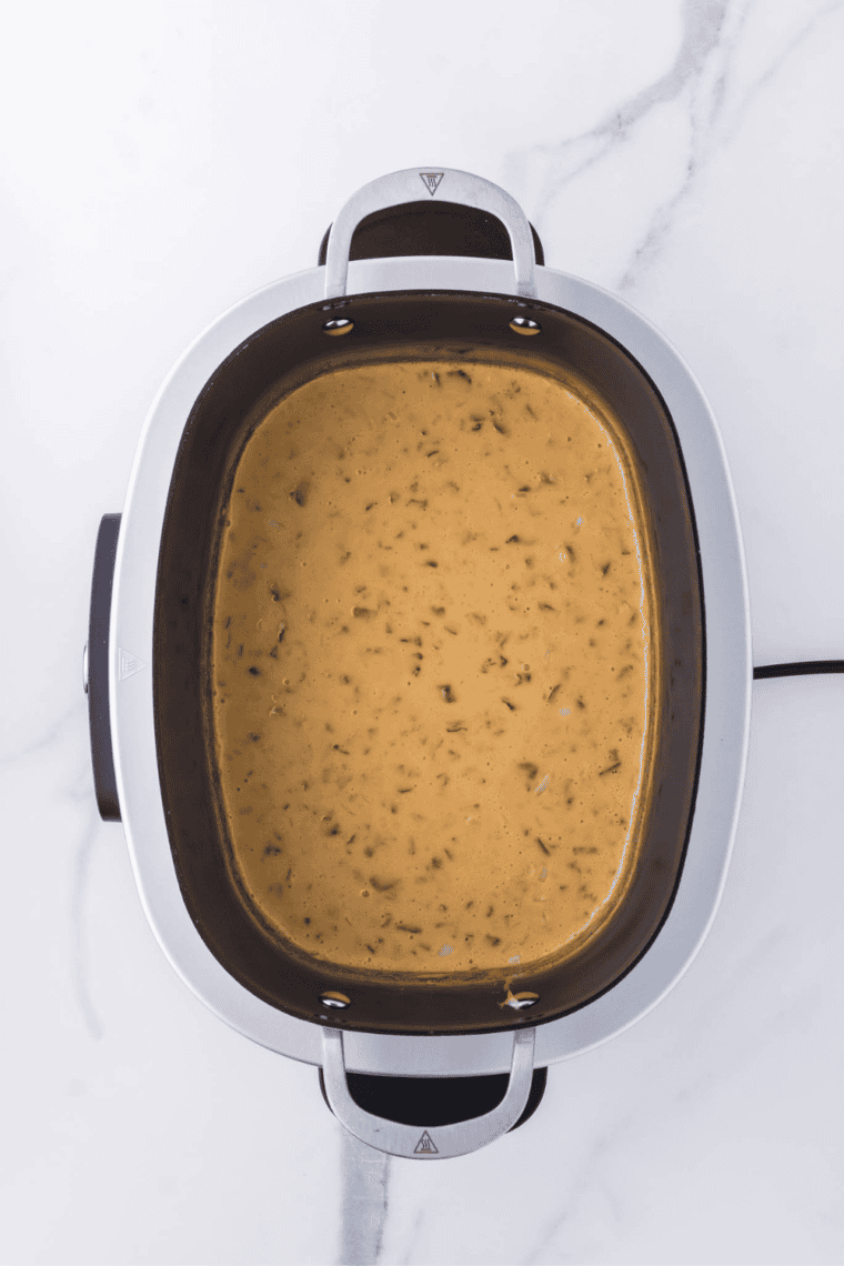 - Cover and cook on LOW for 1–2 hours, stirring occasionally until everything is melted and smooth.