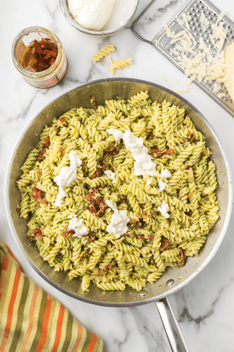 • Sun-Dried Tomatoes: Chop them smaller if needed so they mix easily into the pasta and release flavor throughout.
