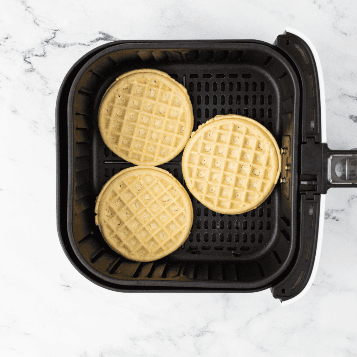 Can you cook frozen waffles and sausage at the same time? Yes! If your air fryer basket is large enough, you can place fully cooked frozen sausage patties or links next to your waffles. Since they have similar cook times, they will both heat through and crisp up perfectly in about 5 minutes.
