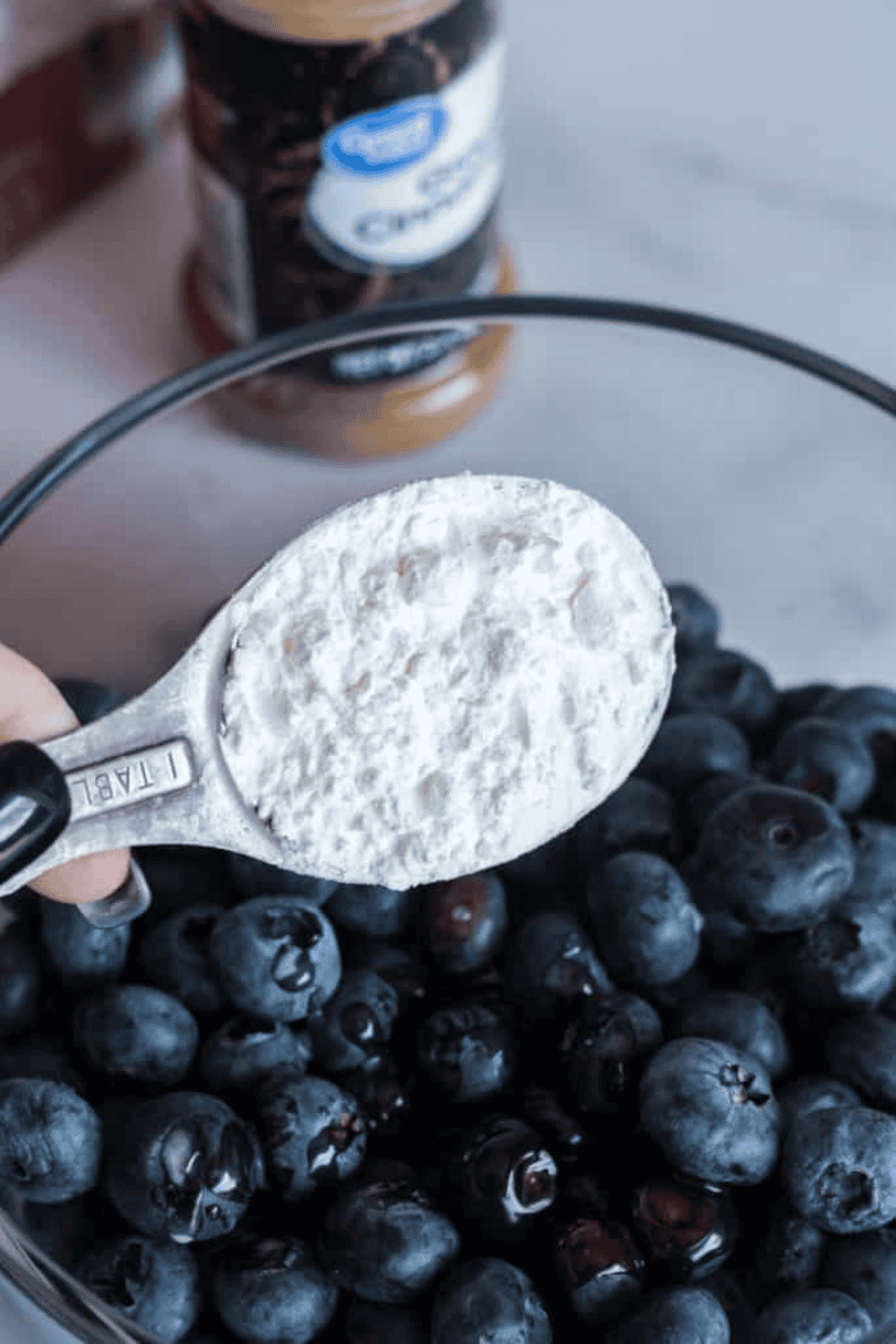 - In a heat-safe glass bowl, small enough to fit in your instant pot, add the blueberries, 2 Tablespoons of melted butter, cinnamon, cornstarch, and sugar. Toss to coat the berries.