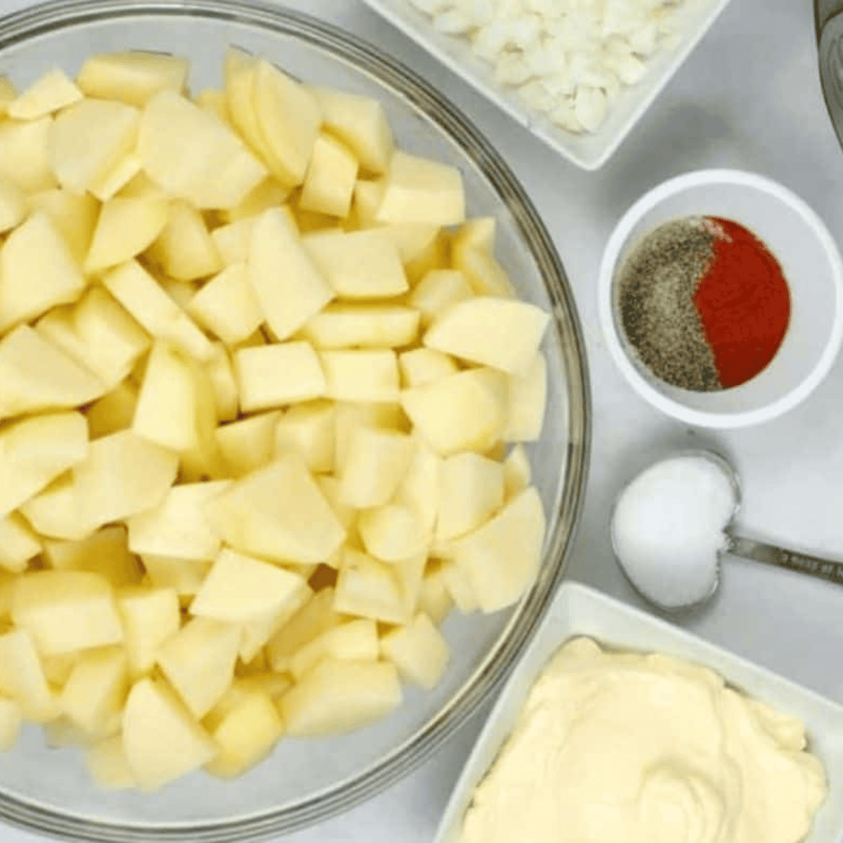 • Mayonnaise: Creates a creamy, smooth base for the potato salad.