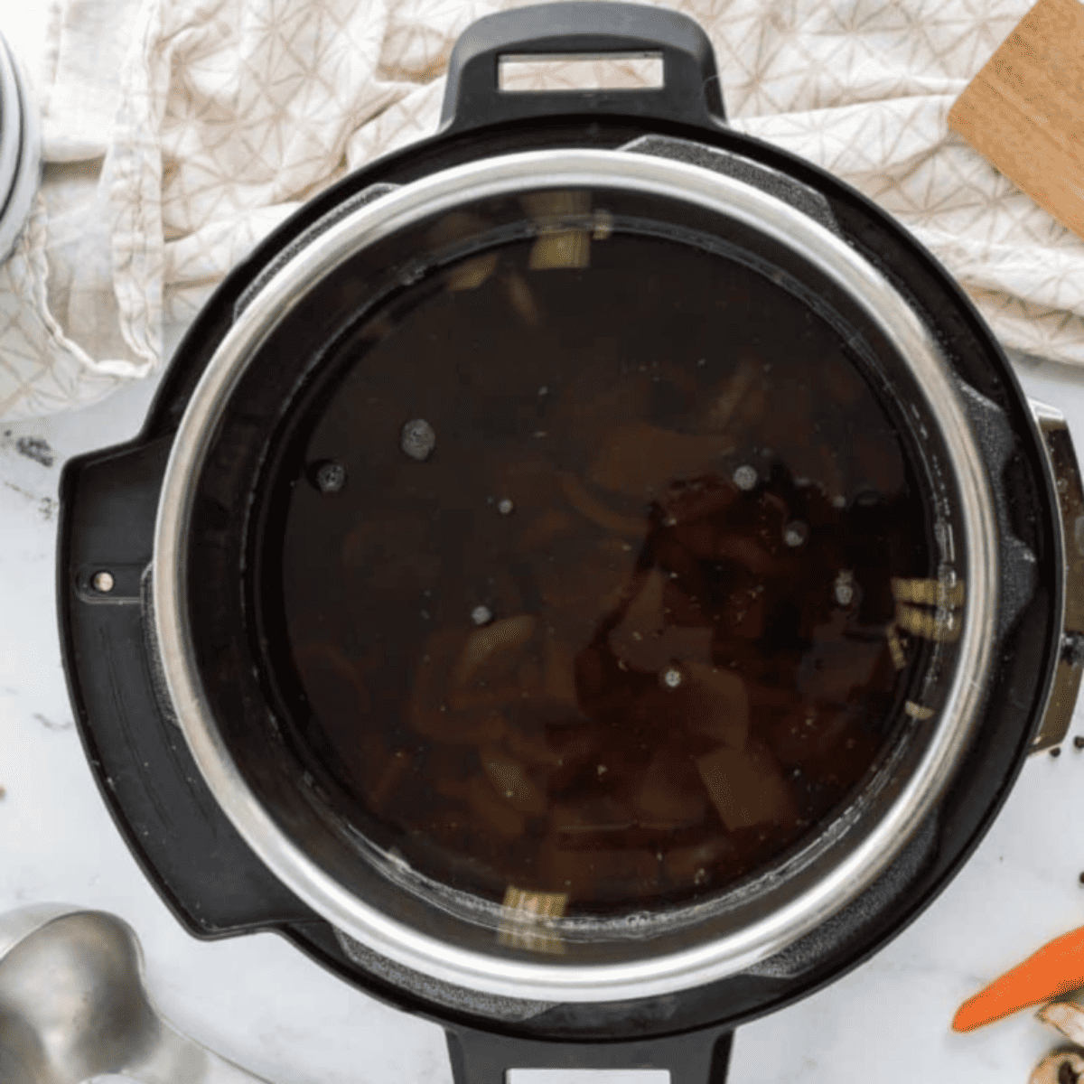 - Cover the vegetables and herbs with cold water. Ensure the water level covers all the ingredients, but leave some space at the top of the Instant Pot to prevent overflow.