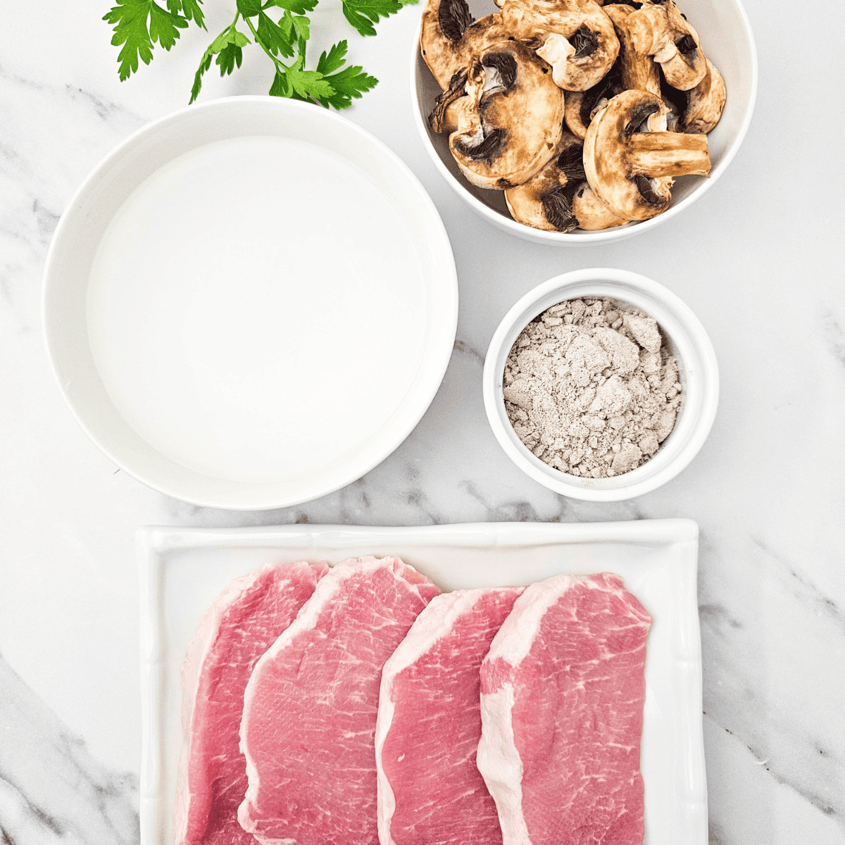 - Once the pork chops are done, add Fresh parsley for garnish. We like to serve this with or over mashed potatoes.