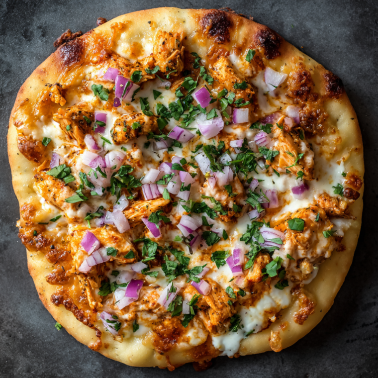 Make Air Fryer Naan Buffalo Chicken Pizza with crispy naan, spicy buffalo chicken, and melted mozzarella. A fast, bold-flavored meal perfect for lunch, dinner, or game day.