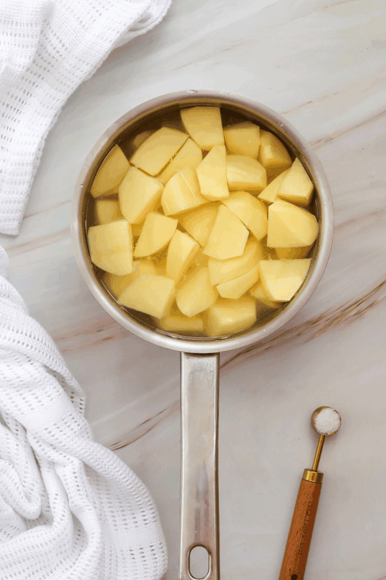 Cook the Potatoes: Start by boiling the potatoes in a large pot of salted water until tender, about 10-12 minutes. Drain and let them cool slightly before cutting them into bite-sized pieces.