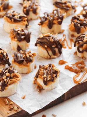Easy Frozen Banana Snickers Bites