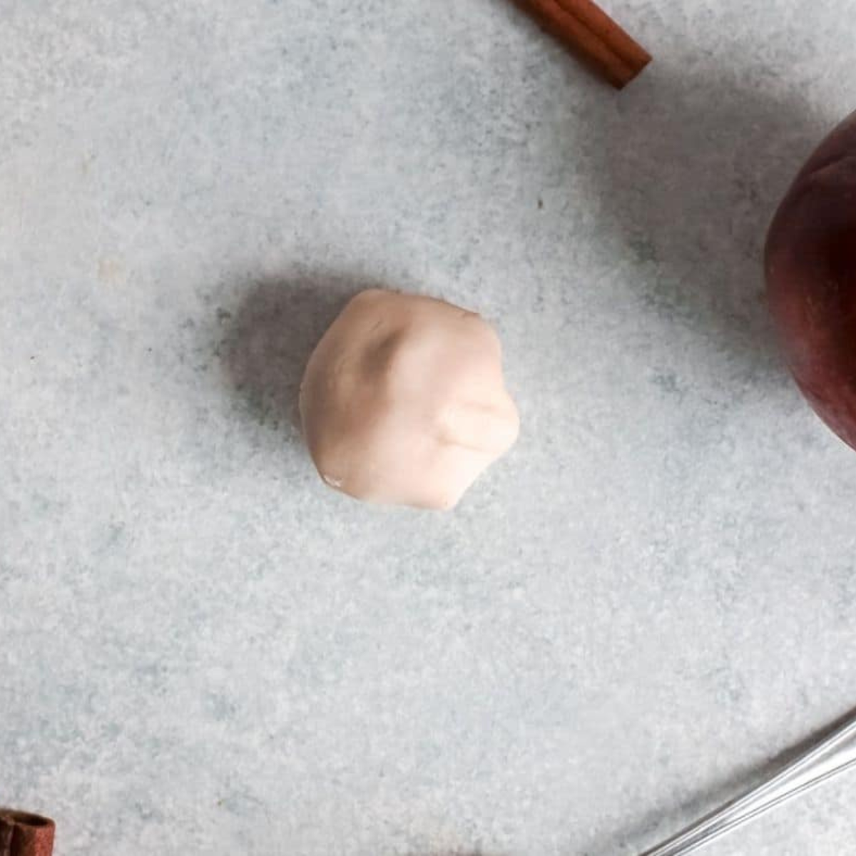 Step 3: Use your hands to pinch the biscuit closed in a ball shape so that it looks like a mini apple pie donut hole.