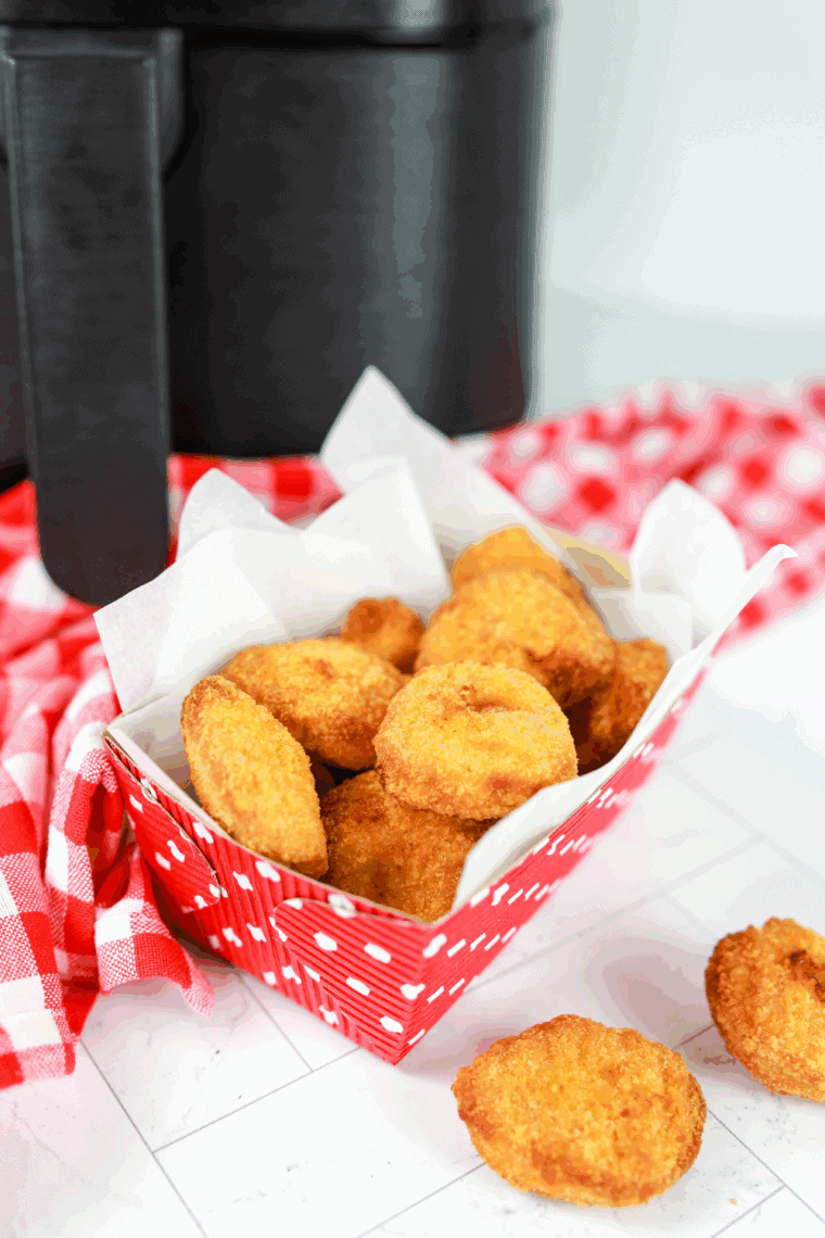 • Do not thaw the nuggets first; frozen nuggets crisp up best in the air fryer.